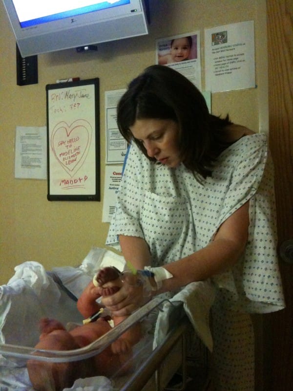 Yeah, mommy finally gets to see my butt. She’s been in the bed recuperating from my arrival, but now she’s allowed to be up and around. So I made her a gift. It’s the least I can do after she’s take such good care of me for 9 months. And she feeds me now too. I love her.