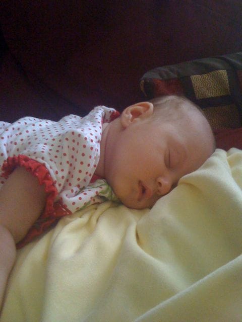 I slept OK last night…only woke mom & dad up twice, then got right back to sleep. But now I’m resting on dad, so I think I’ll take a little nap.