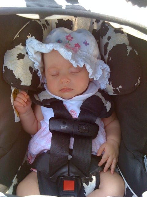 It’s a beautiful day, so mommy took me to the park. But I kept getting the sun in my face, so mommy had to put my “awning” over me. I couldn’t look around at anything, so I just went to sleep.