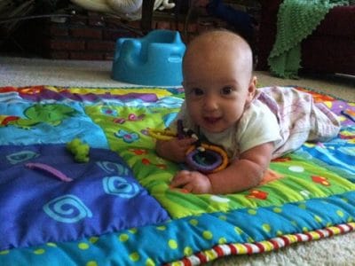 I’m usually a happy baby when I wake up in the morning (if I’ve gotten a good night’s sleep.) When mommy and daddy come in to get me, I give them a big smile. I even smile at them when I’m getting changed and getting dressed… Guess I’m a morning person!