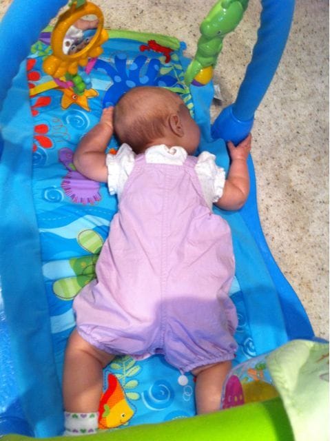 But I guess I still didn’t get enough sleep… I fell asleep while mommy & I were playing on my activity mat.