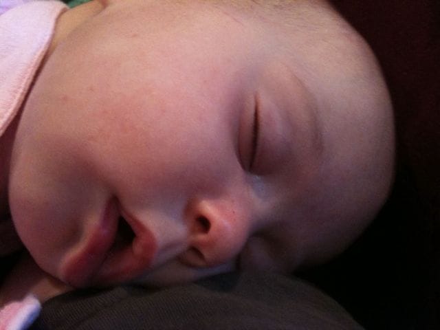 Mommy not feeling well. So daddy made me a bottle. Not as good as fresh but after eating I decided to nap on dad. He’s comfy.