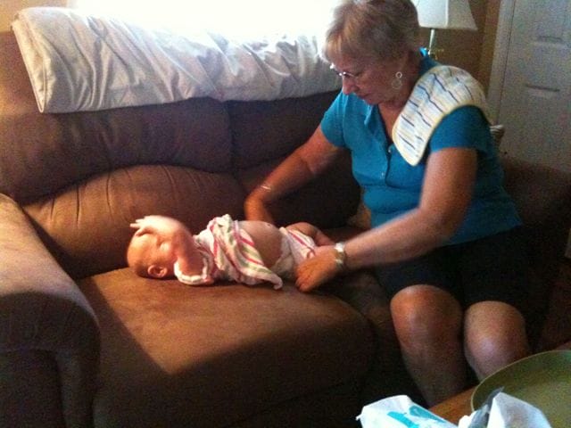 Grandmom’s changing my diaper.