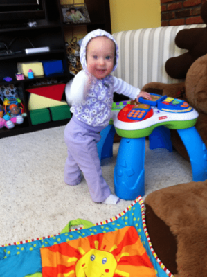 I didn’t sleep much last night, but then I got to take a long nap on mommy this morning… So now I’m in a good mood. Mommy & I will play on my mat until it’s time for me to eat again.