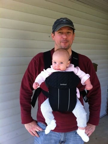 Mommy & daddy took me for a walk, and daddy let me hang out in the Baby Bjorn. It was awesome! I got to see the world – much better than walking in my stroller!