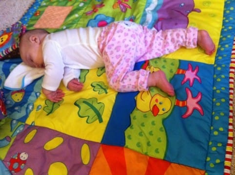Fell asleep while I was eating, and mommy put me on my mat. This is big for me… I usually am only able to nap on my mom.