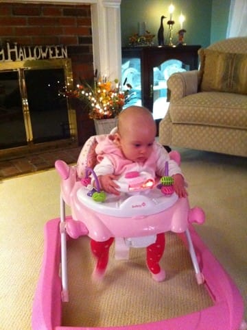 Went to visit grandmom & poppy to show how cute I look in my Halloween costume. They got me a new toy! Now I can sit here and play when I visit them!