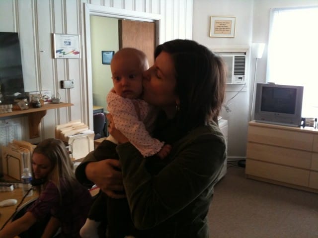 Dad brought me to work for a meeting. And to bring me back to mom. Yippee.
