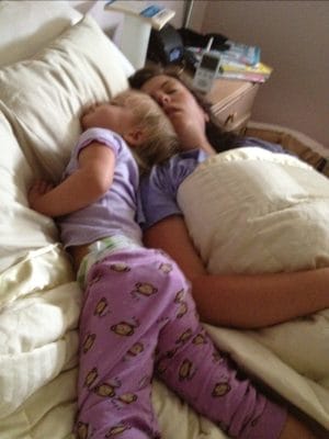 Hi momI'm just gonna rollover to mom and snuggle sleep with her too.
