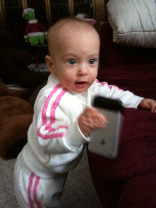 Oooh… look what I found. Mommy left it on the sofa. I can reach it… He he he.