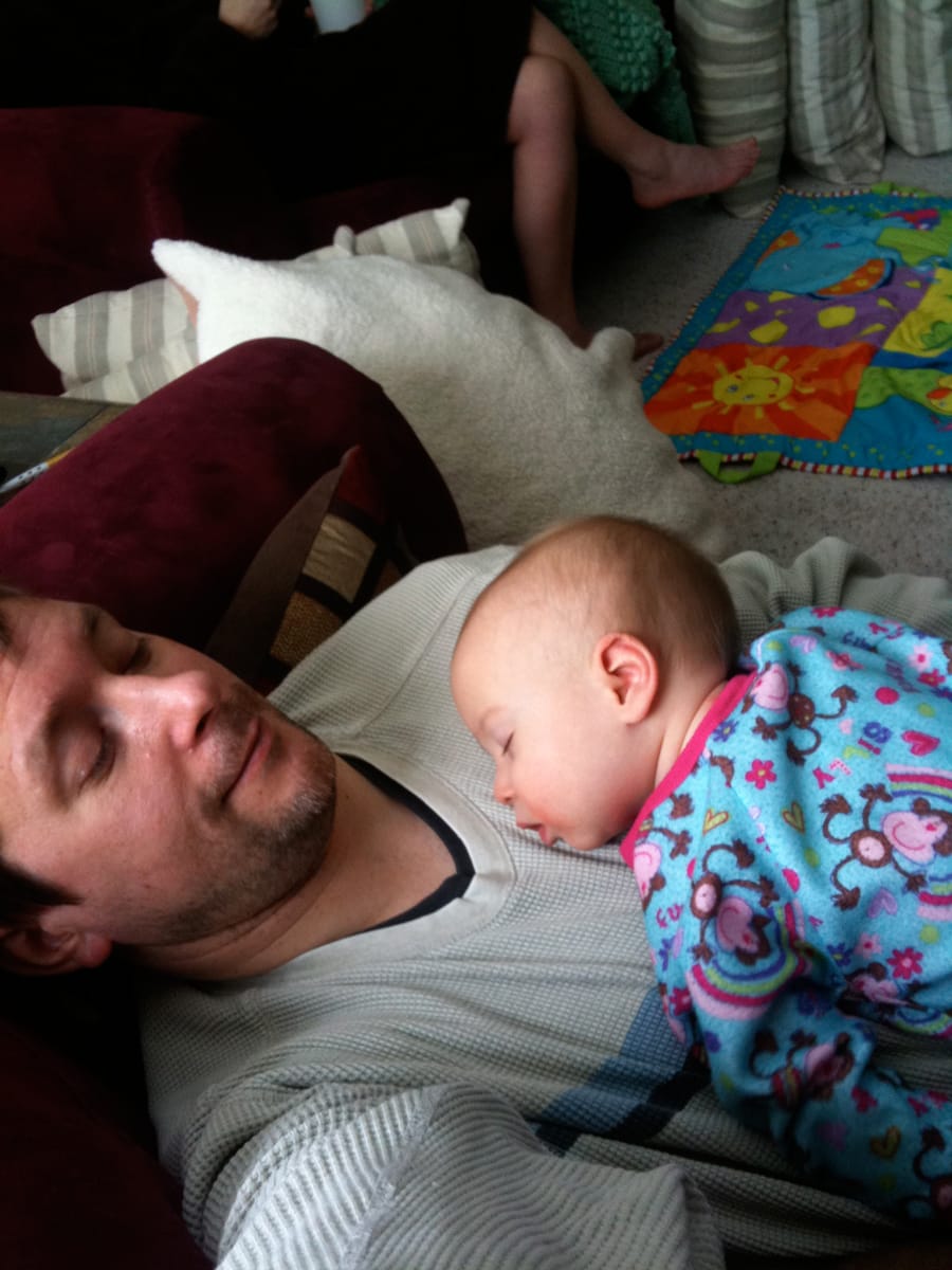 On the weekends dad and mom let me nap on them. They spoil me. I like it.