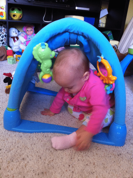 Mommy finally figured out how to turn my activity gym into a tunnel. I like it like this 🙂
