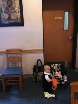 I’m going to church with Mommy. I look very pretty in an outfit Grandmom bought me a while back.