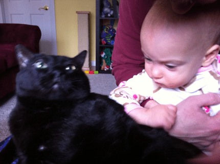 This is a rare treat – Sammy usually doesn’t come downstairs while I am awake. But today I got to pet him… He’s soft, and he tolerated me grabbing his fur.
