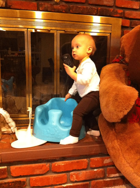 When you stop watching me for even a moment, I do crazy things like climbing up on the hearth, wielding a remote control. It seems I am determined to injure or maim myself.