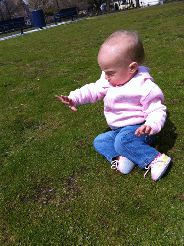 Mommy’s making sure we don’t waste any sunny days, so we were at the park again today. And it was a very eventful day! We played on the swings twice, I played on the playground, and mommy let me sit in the grass (don’t worry – she checked for goose poop first).