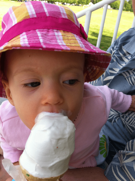When mommy & daddy took me to the park, Mister Softee was there, so daddy bought us an ice cream cone. We all shared – it was yummy!