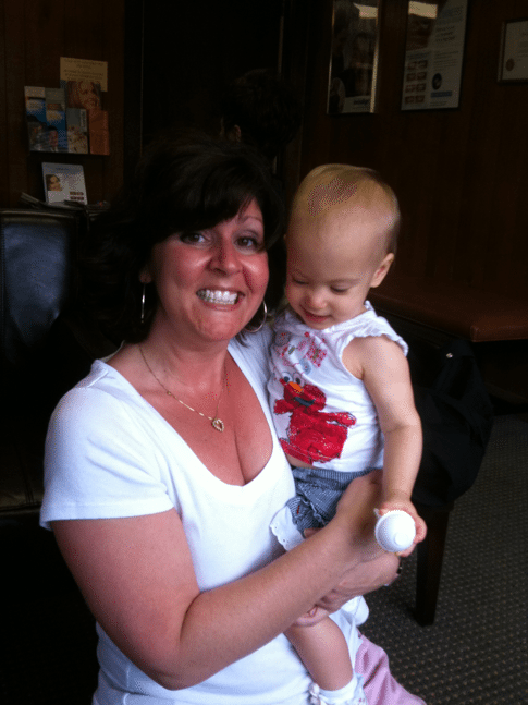 Not really – I only have 6 teeth!! Mommy had a dentist appointment, so I went with her, and daddy came to hang out with me while mommy got her teeth cleaned. Her hygienist, Gina, came out to meet me – the last time mommy was here was a few days before I was born!