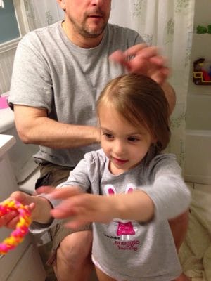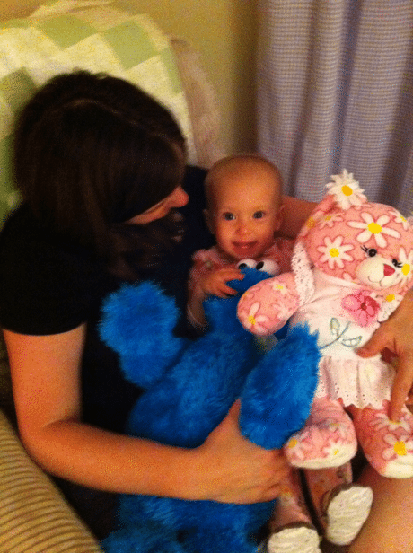 I have mommy, Cookie Monster, and my bunny, Daisy. I’m getting my snuggles before I go to sleep.
