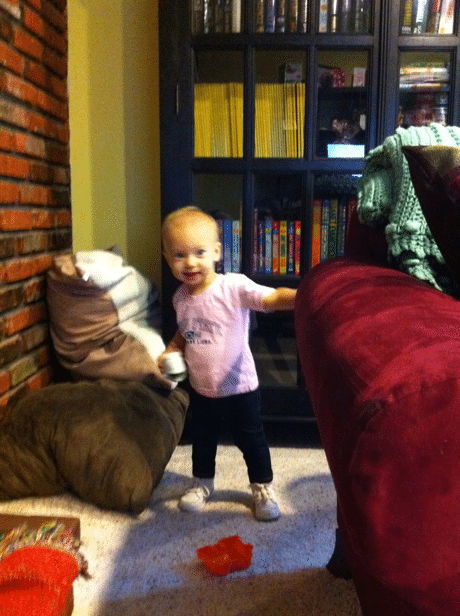 Now that I’m walking really well, I like to get in as much walking as I can. When mommy won’t let me wander around the house, I have to do laps around the family room.