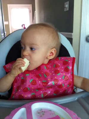 Daddy’s sharing with me. He wanted me to eat little pieces of banana, but I wanted to eat the same way he does.