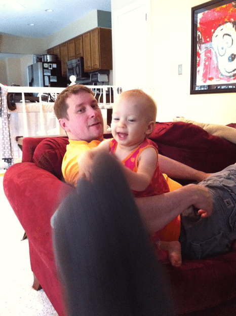 I was trying to hug Charlie, but he ran away from me. Mommy says he’ll be my friend someday.