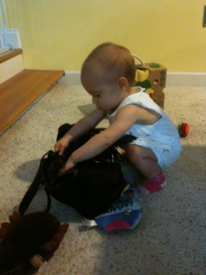 Robbing mommySilly mommy left her purse where I could grab it. Now let's see what's in…