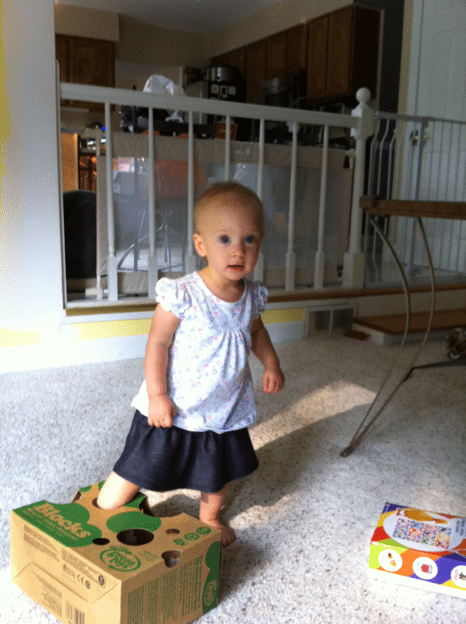 Put my foot through a hole in my block box. Mommy will have to help me out of this…