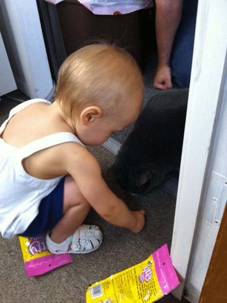 Mommy took me to visit daddy at his office – he’s been working hard and I’ve missed him. While we were there, I tried to get Stinky to be my friend by giving him some treats.