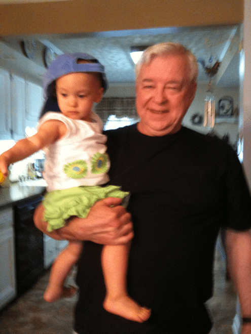 Grandmom and poppy think it’s funny to put Poppy’s hat on me. But I’m so cute I make it look good.