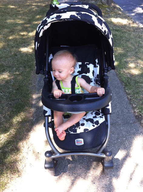 Now, I am not allowed to have a hat, shoes or sunglasses when I ride in the stroller. Guess I’ll have to figure out how to throw my clothes out next!
