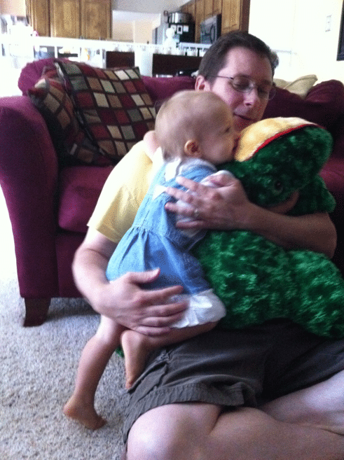 Today is daddy’s birthday, so I’m sharing my frog with him and giving him hugs.