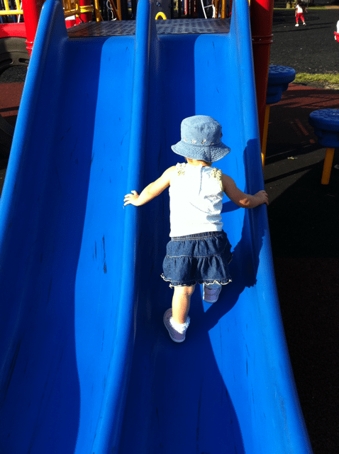 Mommy’s still nervous about me going down the slide… And now I’m trying to walk up the slide. Don’t worry mom – I’ve got it all under control!