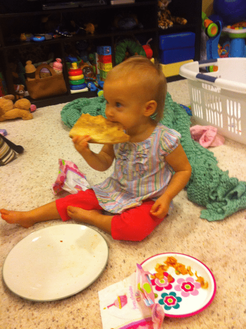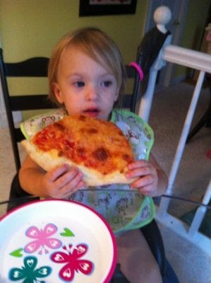 I like pizza! I ate a bunch that daddy cut up for me, then I just went all in & picked up daddy’s slice. Pizza is yummy!