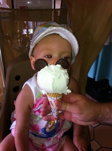 Other than my purple balloon, the ice cream was my favorite part of the day. Fancy, Mickey-ear ice.cream – yummy!