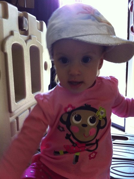 I put my hat on, then mommy tried to straighten it – I put it back the way I like it.