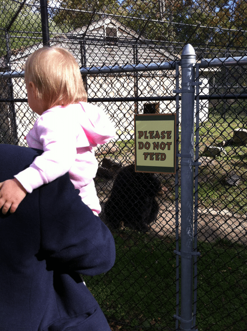 We are not supposed to feed this bear. That’s good, because daddy was going to feed me to him. Phew! Guess I got lucky this time…