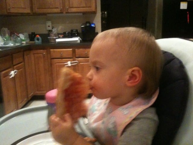 Pizza picnicBeing sick had some benefits. Mommy spoils me and dad brings home pizza.