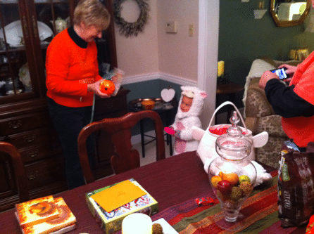 Final stop of the night – Poppy & Grandmom’s house. I got a card & treats, plus they fed me because I hadn’t eaten in a while. They also got me a new toy – a shopping cart that I can push around! I pushed it all around the house.