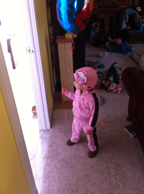 We were all on our way to the store, and we walked past some balloons… Dad had to get me one, and I picked Elmo.