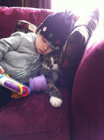 Monster has not been feeling well, and mommy & daddy told me I have to be very gentle with him. I’m being gentle, but I think he needed some snuggles from me. It will make him feel better.