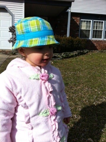 It’s a little chilly, but it’s sunny so mommy bundled me up and brought me outside.