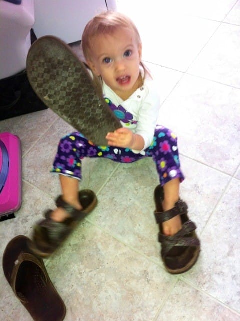 I’m wearing mommy’s shoes & playing with daddy’s shoes.
