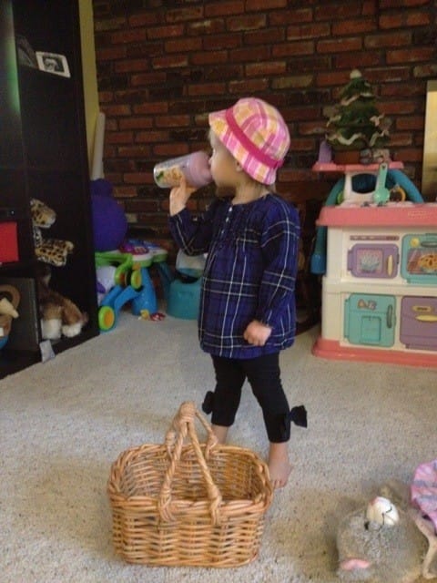 Mom & Dad are taking a trip so Grammy came down to watch me. I’m drinking my milk so I’ll have lots of energy.