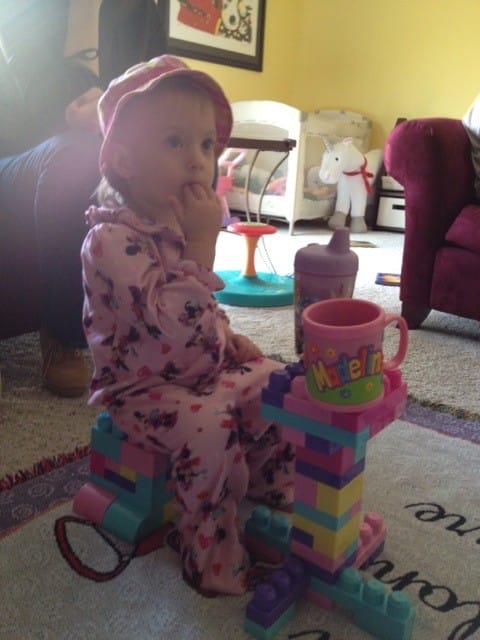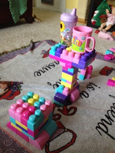 He took my Lego things and constructed a table so I could eat my cocoa treats and milk. He likes me.
