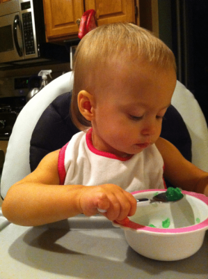 I didn’t want to eat cereal so dad gave me a banana, lime jello, and chocolate milk. I like him.