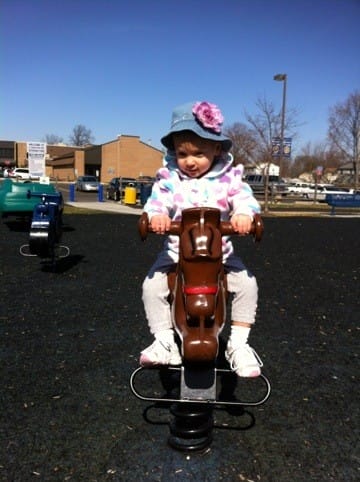 I got on here all by myself, and I’m riding all by myself too. Mommy’s a little sad that she doesn’t have to help me.