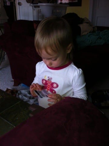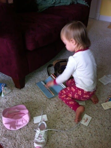 Silly mommy left her purse where I could reach it. I opened her purse, her wallet, and pulled out credit cards & gift cards. She’s just lucky I haven’t mastered the art of online shopping (yet!)