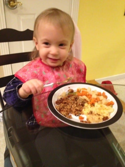 I didn’t want to eat in my high chair, I wanted to sit at the table. So mommy got me my booster chair and daddy and I ate at the table. Mommy is horrified – I’m not a baby anymore.