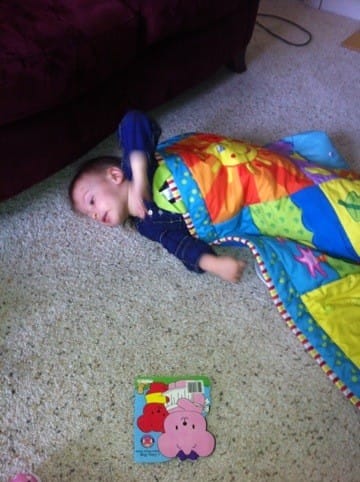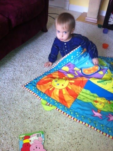 Crawled under my mat & covered myself up. Is it nap time yet, mommy?